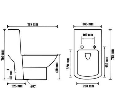 One Piece Toilet - Libia (P-Trap) - 180 mm